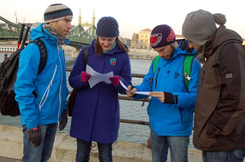 Folyóparti kalandjáték várta az érdeklődőket a Víz Világnapján, március 22-én a Gellért téri kútnál. A Danube Flow – Hív a Duna! programsorozat idei első rendezvényén a résztvevők különböző feladatokat oldottak meg, amelyeket a krimiestek.hu csapata állított össze. A környéken összegyűjtött válaszok egy legendához vezetnek, amelyben egy múlt századi gróf, a Duna és néhány hidroplán is szerepel. A Budapest és a Duna-part titkos életét bemutató kincskereső kalandjáték körülbelül 1-1,5 órát vett igénybe, ezért a rendkívül hideg, szeles idő próbára tette a mindenre elszánt játékosokat.